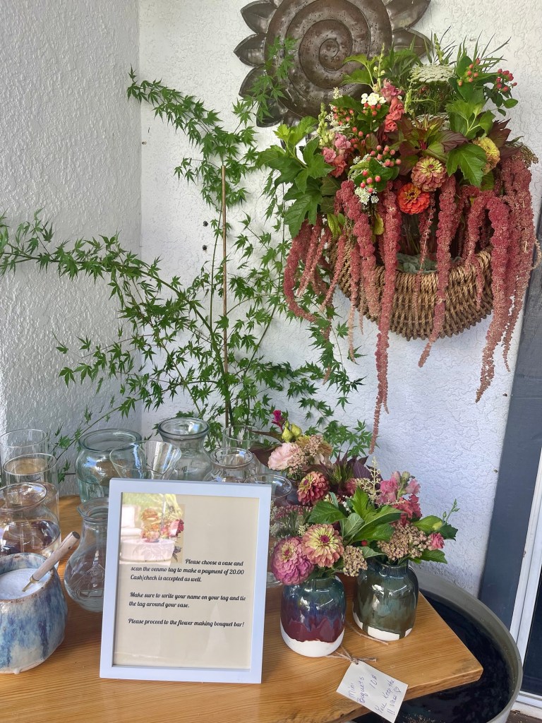 Sharing some photos of our little flower biz, Wind & Willow Flower Farm, first bouquet bar. We had about 20 ladies come out yesterday to create their own bouquets and enjoy some cinnamon rolls. They walked the yard, enjoyed fruit from our orchard and all seemed to have a really nice time.