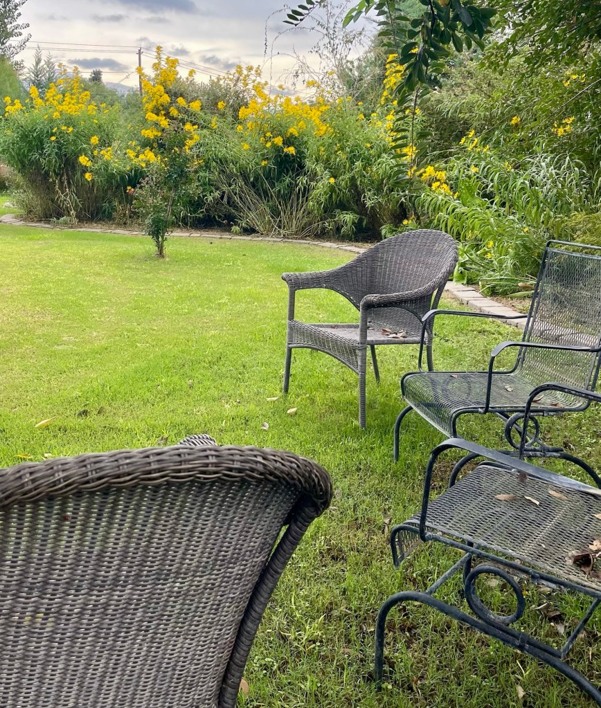 If You Were Here on October 2, 2025October 2, 2025 If you were here…. We might walk down this path… We might look at these flowers… And then walk around and look at them from this view… Then we might sit in these chairs. I wonder what we might talk about? Share this: Click to share on X (Opens in new window) X Click to share on Facebook (Opens in new window) Facebook Like Loading...