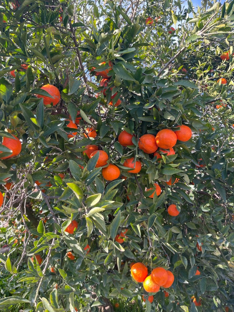 The tangelos were excellent this year along with the oranges. It is on the south side of the house which is the best place to sit outside during the winter.