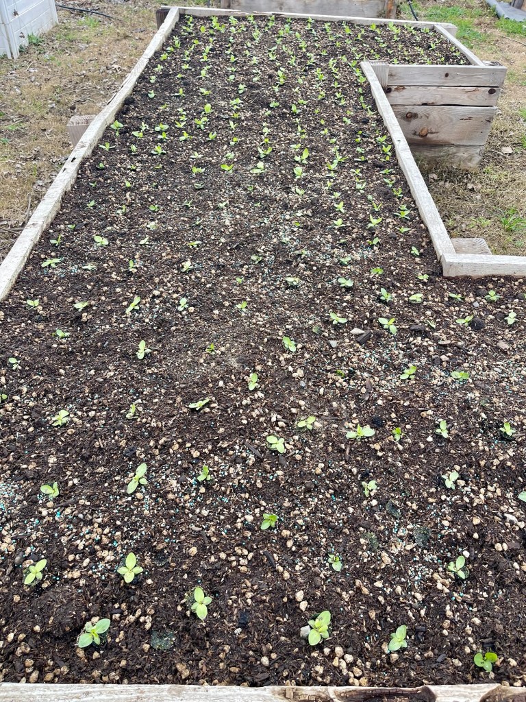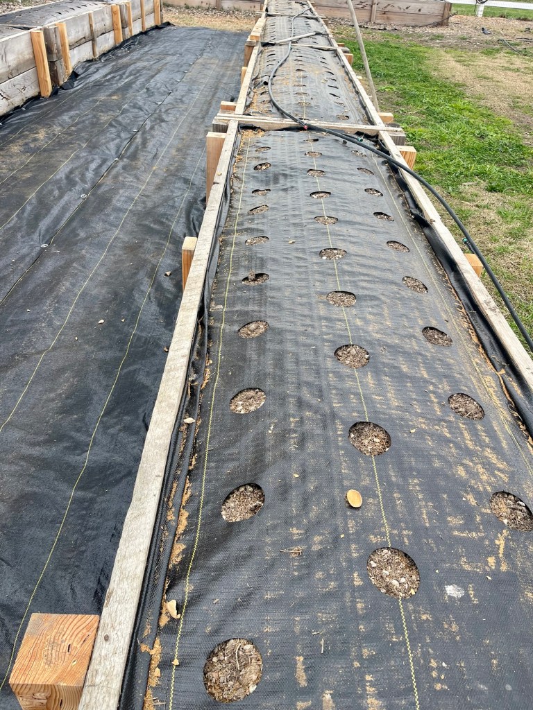 Today 375 apricot colored Lisianthus got planted. They are densely planted so hopefully the weeds won’t take over.